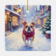 English Bulldog Snowy Christmas Village Holiday Ceramic Ornament