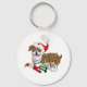 A goofy English Bulldog got his Santa dog toy tangled in Christmas lights. A wonderful decorated keychain for Bulldog fans for Christmas! A humourous present for a bulldog owner.