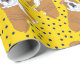 Wrap up gifts for dog lovers and dog owners in style with this patterned wrapping paper. This gift wrap features realistic style illustrations of English bulldogs against a bright yellow background accented by navy blue polka dots.