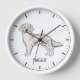Destei's original cartoon illustration of a cute English cream coat colour Golden Retriever breed dog. The clock face is made of simple modern lines. There is also a personalizable text area for a name or other custom text.
