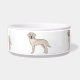 Destei's original cartoon illustration of an English Cream colour Labrador Retriever breed dog. The dog design is placed multiple times on this bowl making the dog illustrations go around the product. This design is ideal for any Lab dog owner who is looking for a fun and charming pet bowl for their dog's dinner or water.