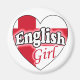 Leuke magneet met een hart afgebeeld met de engelse vlag erop. Op de tekst staat: English girl De achtergrond is in de kleur wit. Leuk om te geven als cadeau of voor jezelf om te laten zien dat je trots bent om Engels te zijn. kleuren: rood en wit.