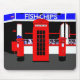 Collage of traditional English icons - red telephone box and red postal box in front of a fish and chip shop. This design has been created using photographs which have been digitally manipulated. The perfect mousepad for the person who loves all things English.