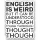 English is Weird. It can be understood through tough thorough thought though. Funny English language statement. Grammar quote / saying. Great for English teachers, grammar lovers, spelling, school, and learning the English language. Fully customisable bold black text/font.