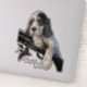 The stick looks amazing. Unfortunately, it would not stick on our suitcase as it was textured. When we found a non-textured (smooth) suitcase, the sticker stuck and looks great. The printing looked awesome.
