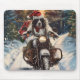 English Setter Dog Riding Motorcycle Christmas Mouse Pad