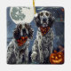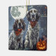 Unleash the spooky spirit with this eerie Halloween design featuring a pack of dogs under a dark, moonlit sky, surrounded by flying bats and glowing pumpkins. Perfect for those who love a touch of frightful fun with their furry friends!
