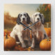 English Setter Puppy Autumn Delight Pumpkin Square Wall Clock
