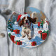 English Setter Running in Snow with Christmas Hat 6 Cm Round Badge