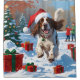 A graceful English Setter runs joyfully through the snowy winter scene, wearing a festive red Christmas hat. This elegant design highlights the breed’s speckled coat, gentle personality, and lively spirit while capturing the warmth and magic of the holiday season. A heartwarming winter moment full of festive charm.