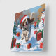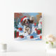 English Setter Running in Snow with Christmas Hat Square Wall Clock