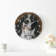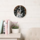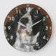 Stylish wall clock with white numbers that features the photo image of an adorable English Springer Spaniel. Clock face has cute, little paw prints at each 5 second mark. Use to decorate a living room, bedroom, or any other room. Select your clock size and style. As well, you may customise to replace image with your own pet photo.