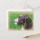 This cute dog postcard features the profile of an adorable liver and white English Springer Spaniel lying in the grass.