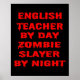 This text design featuring the quote "English Teacher by Day Zombie Slayer by Night" in blood red writing is perfect for any English teacher that loves zombies.
