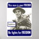 This vintage World War Two poster features a smiling English soldier. It declares, "This man is your friend, He fights for freedom". Celebrate American, British, and WW2 History with this digitally restored vintage war poster product from The War Is Hell Store.