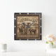 Engraved Elephant Mother Baby Savannah Square Wall Clock
