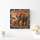 Engraved Elephant Sunset Savannah Square Wall Clock