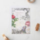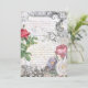 Lovely vintage roses and mixed bouquet on aged parchment with ornate engraved floral swirls and French handwriting.