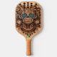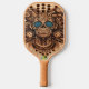 A Pickleball Paddle featuring an intricately engraved skull surrounded by vibrant flowers, creating a unique and artistic design.