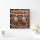 Engraved Turtle Pair Wood Grain Square Wall Clock