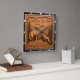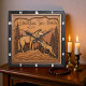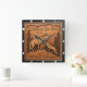 Engraved Wolf Pair Orange Mountain Square Wall Clock