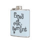 The flask itself is fine. It’s a cheap flask, obviously bought in bulk, however am prepared to overlook that. Given that it is a personalized item, I would have liked to have seen gift boxing instead of the generic packaging. Terrible printing, and/or quality. It’s a cheap, tacky vinyl. It is not cut straight and is also applied in a way that it is overhanging the bottom, causing the glue to catch on items and it will eventually roll and tear, damaging the wrap.