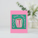 Original illustration of a tall colourful striped coffee cup with coffee or hot chocolates and simple hand lettering quote saying “ Enjoy this very moment” in pink on green background. There are tiny pink hearts going up with the steam.