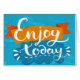 Enjoy today - positive quote, handwritten calligraphy on blue grunge background and orange ribbon. Vector typography design for cards, t-shirt, posters and social media content. | Bigstock® - All Rights Reserved.