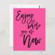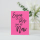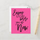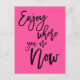 Enjoy Where You Are Now Quote Black Script Pink Postcard