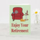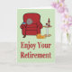 The perfect card for anyone who about to retire. Featuring a comfy red armchair, a side table with a bottle and glass of Red Wine and a cat laying on the floor beside the chair creating a warm and cosy image. All set on a pastel green background with simple message "Enjoy Your Retirement" in red. Put your own special retirement message inside.