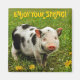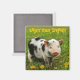 Photo of the cute piglet on the meadow on magnet with ords "Enjoy your spring"