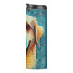 This happy Golden Retriever illustration is a great design for dog lovers and Golden Retriever owners. It has a blue-green background colour and it suits to most colour combinations.