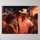 Painting of a handsome Cuban man having a fun conversation with a beautiful Cuban woman in a popular downtown Miami street market.