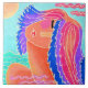 My colourful abstract digital painting of a woman enjoying the sunshine printed on ceramic tile