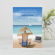 A beautiful beach scene with a seated female looking at the distance towards a sailboat. Her computer is next to her on the sand. A wonderful retirement party invitation for a hard-working female.
