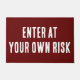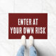Enter at Your own Risk. Warning on a doormat. Warning welcome mat for the front door..