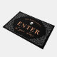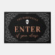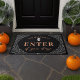 Greet your guests with this spooky-chic Halloween doormat! Design features a black background with your name curved across the top, and "Enter if you dare" beneath. A filigree border and a skeleton accent complete this spooky Halloween design.
