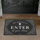 Greet your guests with this spooky-chic Halloween doormat! Design features a black background with your name curved across the top, and "Enter if you dare" beneath. A filigree border and a skeleton accent complete this spooky Halloween design.