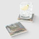 The coasters are gorgeous, a quality feel and heavy weight. They look like a precious archeological find. A rustic stone juxtaposed with a modern floral black and white print. I like the way the print goes slightly imperfect on the cut stone edges giving them a kind-of natural beauty.