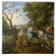 This design features a painting by Jan Brueghel the Elder (1568–1625), who was a Flemish painter and draughtsman. It shows many different animals collected together in one place, before they are shepherded onto Noah's Ark, from the Bible, in the Book of Genesis, chapters 6–9. In the Biblical story, God spares Noah, his family and examples of all the world's animals from a flood that was going to engulf the entire Earth. This painting shows a wide range of animals: there are beautiful birds and bats in the sky and sitting on treetops, tiny turtles and hamsters in the foreground and large lions, leopards, camels and elephants in the center. Turkeys and guinea pigs are depicted, but they had only recently been discovered in the Americas. This painting was commissioned by Archduke Albert and the Infanta Isabella, rulers of the Southern Netherlands: they kept a menagerie of rare animals and birds, including parrots from Central and South America, at their palace in Brussels, allowing Brueghel to study the animals closely and paint them from sight. The original painting was produced in 1613.