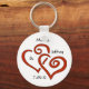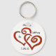 Red Entwined Hearts Keychain, on white background with customisable text, including date. Makes a great wedding favour!