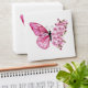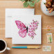 Flower arrangement of pink butterfly with pink Japanese cherry blossoms on white background.