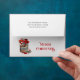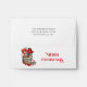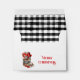 This festive Christmas envelope pairs rustic charm with holiday cheer, featuring a cozy black and white buffalo check lining that peeks out from the flap. Featured is a warm illustration of a basket overflowing with wrapped gifts, holly, and ornaments, evoking the spirit of giving and celebration. The bold red “MERRY CHRISTMAS” greeting beneath the artwork adds a joyful pop of color, making the whole presentation feel like a heartfelt holiday hug in paper form.