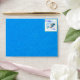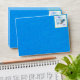 Envelope with a postage stamp. The envelope has a blue texture. The stamp is glued at the top. Image: Girl riding a sled down the mountain. Winter landscape, mountains. Denomination - 50 cents. US Post Office. This is an author's collection. I accept orders for postage stamps. Write to e-mail.