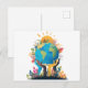 Environment - Earth Illustration with Hand & sun Holiday Postcard