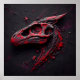 A dinosaur's fossil head emerges on a charcoal granite backdrop. Engage with abstract black and red burgundy colours, intertwined with textured charcoal elements, in a dark-themed masterpiece that spans through the ages.