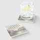 The coasters are gorgeous, a quality feel and heavy weight. They look like a precious archeological find. A rustic stone juxtaposed with a modern floral black and white print. I like the way the print goes slightly imperfect on the cut stone edges giving them a kind-of natural beauty.