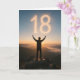 Celebrate turning 18 with a card that feels like the start of an epic adventure. This striking design features the silhouette of a young man standing triumphantly on a rocky mountain peak at sunrise, arms raised in victory as the glowing number “18” appears in the sky like illuminated clouds. The warm golden light over rolling mountains and misty valleys captures that powerful moment between youth and adulthood—perfect for a teen who’s ready to chase big dreams.
