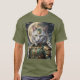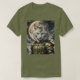 This stunning image features an anthropomorphic cat dressed in ornate green and gold armour. The cat, with white fur and brown markings, has piercing green eyes that add to its mystical presence. A large green gem adorns the centre of its chest piece, highlighting the intricate designs of the armour. Set against a backdrop of a large, full moon and a night sky filled with clouds and stars, the scene also includes traditional Asian-style buildings, enhancing the fantastical and immersive atmosphere. This artwork perfectly blends elements of fantasy and cultural aesthetics, making it a captivating piece for art enthusiasts and fantasy lovers alike.
