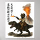 Epic Black Cat Cowboy Riding Dinosaur with Volcano Poster